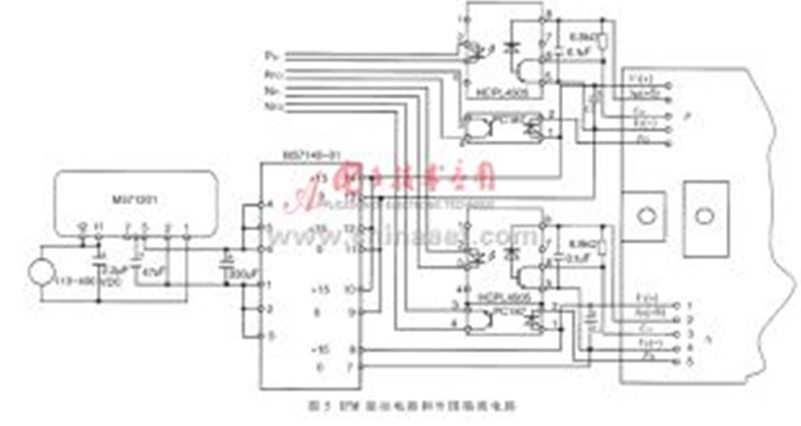 筆者在DSP控制開關(guān)磁阻電機(jī)的項(xiàng)目中,選用IPM作為功率變換器的主開關(guān)器件,控制器采用了德州公司的TMS320F240 數(shù)字信號(hào)處理器,功率驅(qū)動(dòng)電路的輸入(即IPM的控制信號(hào))由TMS320F240內(nèi)含的全比較單元相對(duì)應(yīng)的PWM1~PWM4產(chǎn)生。