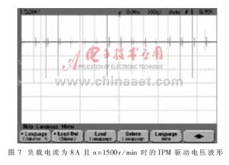 圖7為負(fù)載電流為8A、SRM額定轉(zhuǎn)速運(yùn)行時(shí)IPM的15V驅(qū)動(dòng)電壓波形。