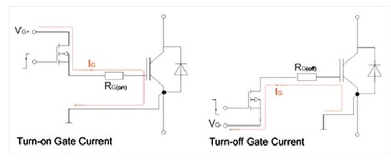 用于控制、調節和開關目的的功率半導體需要更高的電壓和更大的電流。功率半導體的開關動作受柵極電容的充放電控制。而柵極電容的充放電通常又受柵極電阻的控制。通過使用典型的+15V控制電壓(VG(on)),IGBT導通,負輸出電壓為-5 …-8…-15V時,IGBT關斷。IGBT的動態性能可通過柵極電阻值來調節。柵極電阻影響IGBT的開關時間、開關損耗及各種其他參數,從電磁干擾EMI到電壓和電流的變化率。因此柵極電阻必須根據具體應用的參數非常仔細地選擇和優化。