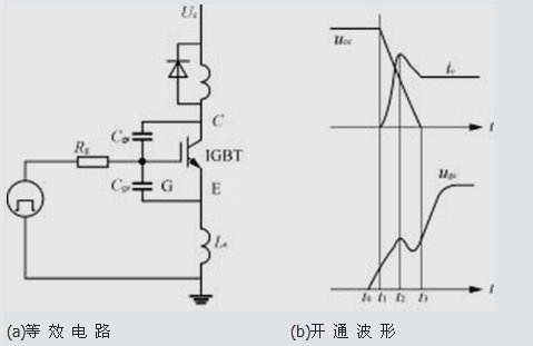 圖1 IGBT開關等效電路和開通波形