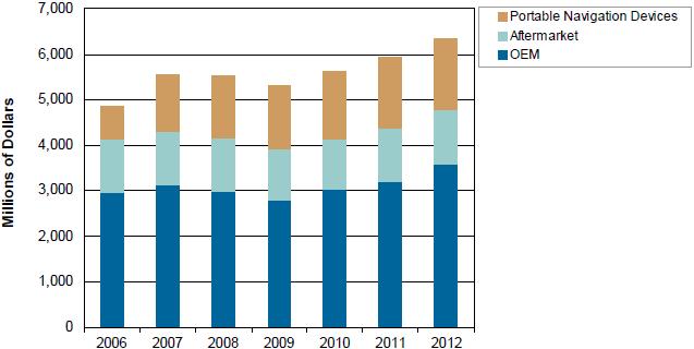 隨著人們對嵌入式系統的興趣日增,以及2010年汽車產量可能回升,預計低成本in-dash導航儀將促進各類汽車的導航設備配售率, 2012年將從2007年時的15%上升到25%。iSuppli公司預期,歐洲和北美的導航設備設備將追隨日本的趨勢,變得日益通用商品化,將在大批量中檔市場越來越多的車型中成為標準配置。