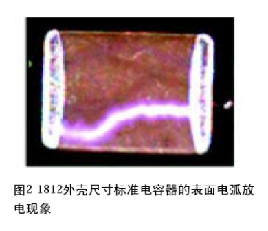 這些電容器的電容值通常是相同的,所以在這種情況下每個電容器的有效電壓(VC)都等于施加在該器件上的總電壓(VT)除以電容器的數(shù)目(n)即VC=VT/n。利用這種方法可以降低每個電容器組的有效電壓。高壓電路的設(shè)計者還利用這個原理,通過串聯(lián)單個電容器來降低每個電容器的電壓。不過,在兩種情況下總電容(CT)都將會下降:1/CT=(1/C1+1/C2…+1/Cn)利用一臺高速相機(jī)觀察到了另一個重要的問題,即在一個標(biāo)準(zhǔn)電容器設(shè)計上施加一個電壓之后出現(xiàn)的表面電弧放電現(xiàn)象,如圖2所示。“浮動電極”串聯(lián)設(shè)計可以有效地解決表面弧的問題。不過,與如前所述的標(biāo)準(zhǔn)設(shè)計相比,其主要弊端在于其較低的容量。