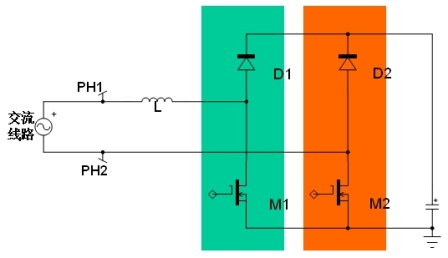 圖3:傳統的無橋PFC結構示意圖。