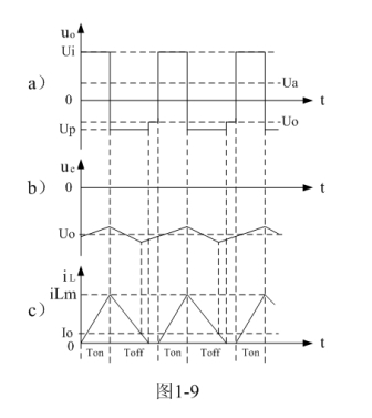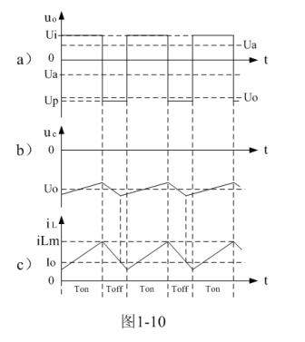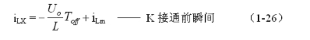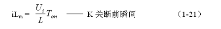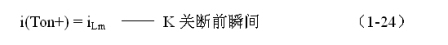 式中i(Ton+)為控制開關(guān)K從Ton轉(zhuǎn)換到Toff的瞬間之前流過電感的電流,i(Ton+)也可以寫為i(Toff-),即:控制開關(guān)K關(guān)斷或接通瞬間,之前和之后流過電感L的電流相等。實(shí)際上(1-23)式中的i(Ton+)就是(1-21)式中的iLm,即: