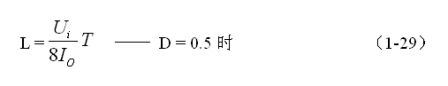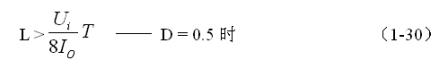 (1-29)和(1-30)式,就是計(jì)算反轉(zhuǎn)式串聯(lián)開關(guān)電源中儲能電感的公式。同理,(1-29)和(1-30)式的計(jì)算結(jié)果,只給出了計(jì)算反轉(zhuǎn)式串聯(lián)開關(guān)電源儲能濾波電感L的中間值,或平均值,對于極端情況可以在平均值的計(jì)算結(jié)果上再乘以一個大于1的系數(shù)。