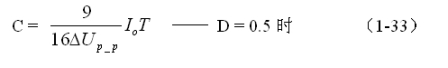 同理,(1-33)和(1-34)式的計(jì)算結(jié)果,只給出了計(jì)算反轉(zhuǎn)式串聯(lián)開關(guān)電源儲能濾波電容C的中間值,或平均值,對于極端情況可以在平均值的計(jì)算結(jié)果上再乘以一個大于1的系數(shù)。