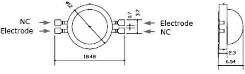 AC LED成熟的產(chǎn)品如首爾用于AC110V的AX3201、AX3211和用于220V的AX3221、AX3231。用于AC110V功率在3.3W~4W,工作電流40mA;用于AC220V功率在3.3W-4W,工作電流20mA(圖4)。LED晶粒直接邦定在銅鋁基板上。引腳如圖5所示。