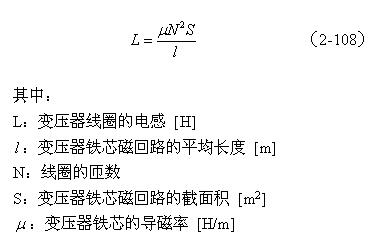 【說明】上式是用來計算變壓器線圈電感的計算公式。由于變壓器鐵芯的磁回路基本是封閉的,變壓器鐵芯的平均導磁率相對來說比較大。鐵芯的導磁率一般在產品技術手冊中都會給出,但由于大多數開關電源變壓器的鐵芯都留有氣隙,留有氣隙的磁回路會出現磁場強度以及磁感應強度分布不均勻,因此,(2-108)式中的導磁率只能使用平均導磁率,技術手冊中的數據不能直接使用。