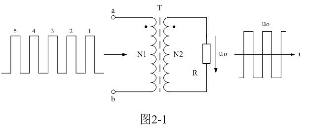 為了簡單起見,我們把單激式變壓器開關電源等效成如圖2-1所示電路,其中我們把直流輸入電壓通過控制開關通、斷的作用,看成是一序列直流脈沖電壓,即單極性脈沖電壓,直接給開關變壓器供電。這里我們特別把變壓器稱為開關變壓器,以表示圖2-1所示電路與一般電源變壓器電路在工作原理方面還有區別的。