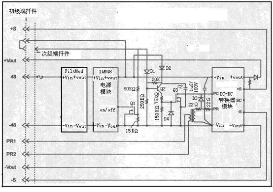 當48V母線關斷時,母線上的保持電容可通過并聯開關迅速放電。除了通斷控制功能外,IAM48模塊還具有限制浪捅電流的功能,并且與FiltMod模塊或EMI濾波器模塊配合,還可完成瞬變過電壓保護.通信設備中為了滿足EMC{電磁兼容)標準,通常都采用IAM48和FitMod模塊(見圖1中FitMod模塊與IAM48模塊的連接)。在通信設備中,都要求電源模塊具有熱插拔功能,因此應選用lAM48電源模塊或其他可限制浪涌電流的模塊。