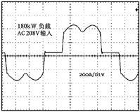 典型的6脈波晶閘管整流器的輸入電流波形如圖3所示(示波器實拍)。通過輸入電感限制di/dt,輸入諧波THD>30%。