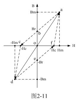 在圖2-11中,直線d-o-a是變壓器鐵芯的理想磁化曲線;當輸入電壓為交流的時候,磁通密度是從負的最大值- Bm到正的最大值Bm之間來回變化。
