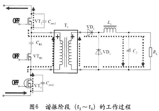 其中t1~t2和t3~t4的諧振時間是實現零電壓開關的關健,可以調節使零電壓開關做到最佳。