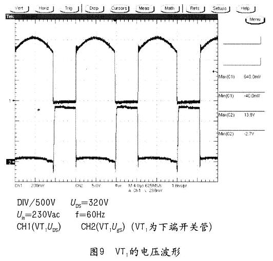 實際波形結果我們實際用一般雙晶體管正激的產品經過改進,將其調整為上述的有源鉗位方式,其實際的雙晶體管工作波形如圖9~圖12所示。