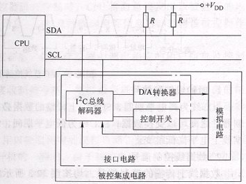掛接在I2C總線上的受控集成電路大多屬于模擬電路,而受控集成電路中的I2C總線接口電路則屬于數字電路。為避免數字電路與模擬電路之間的互相干擾,常為數字電路與模擬電路設置單獨的供電端子,即設置I2C總線接口電路專用電源端子(或數字電路電源引腳)。如果I2C總線接口電源端子沒有電壓,則這塊集成電路不能正常工作。