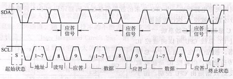 數據線上傳輸的控制信號,均按圖3所示的內容和順序先后傳輸:起始狀態信號、被控電路地址、讀寫方式(數據傳輸方向位)、應答信號、數據信號、應答信號、數據信號、應答信號、終止狀態信號。