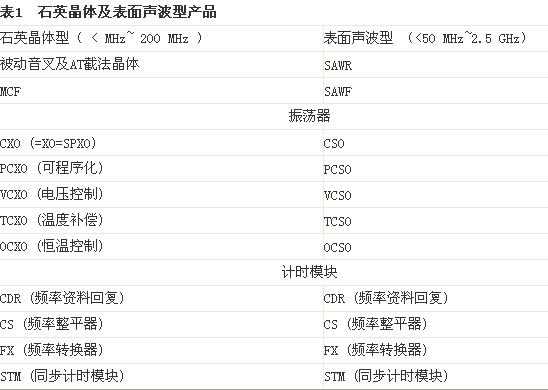 因?yàn)橛芯€及無線市場(chǎng)的快速成長(zhǎng),石英晶體及其高頻所需的表面聲波(SAW)裝置已受到廣泛運(yùn)用,范圍從電子玩具所使用的簡(jiǎn)單被動(dòng)石英晶體,到最精密電信網(wǎng)絡(luò)骨干頻率所使用的復(fù)雜同步計(jì)時(shí)模塊(STM)(表1)。如前篇文章所述,從2000~2001年的「.COM」市場(chǎng)瓦解之后,對(duì)于石英晶體及石英振蕩器的需求,以每年4~10%之間穩(wěn)定增加。而頻率控制產(chǎn)品的產(chǎn)業(yè)大環(huán)境,也經(jīng)歷巨大的變化。