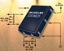 DS4625很好地解決了高頻、大電流設(shè)計中小尺寸陶瓷封裝常見的散熱問題。集成散熱焊盤為晶體提供有效的散熱通道,確保在-40°C至+70°C溫度范圍內(nèi)可靠工作。DS4625采用基頻AT切晶體技術(shù)制造(無泛音),基于PLL的低噪聲振蕩器采用Maxim的SiGe工藝設(shè)計。整個設(shè)計方案具有< ±7ppm (10年以上)的超低老化率和優(yōu)異的頻率穩(wěn)定性,由電壓、溫度、初始容差和老化引起的變化小于±50ppm。與競爭器件(如:基于SAW的振蕩器設(shè)計)相比,DS4625能夠以更小的封裝尺寸提供同等級別的抖動性能,在-40°C至+70°C較寬的溫度范圍內(nèi)具有更好的穩(wěn)定性(分別為±50ppm和±100ppm或更大)。