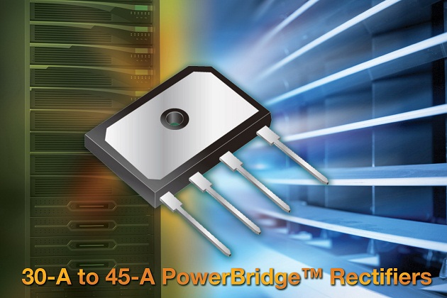 Vishay Intertechnology, Inc.近日宣布,推出新系列增強型高電流密度PowerBridgeTM整流器。整流器的額定電流高達30A~45A,最大峰值反向額定電壓為600V~1000V,外殼絕緣強度高達1500V。該系列45A器件是業界首款采用PowerBridge封裝的單列直插橋式整流器,產品尺寸為30mm x 20mm,厚度為3.8mm。