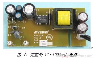 圖4為采用PI器件設(shè)計的電源電路樣品,只需為數(shù)不多的元件即可設(shè)計出這種高效率充電器/適配器,并且完全滿足EMI、安全性及耐用度等要求。