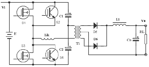 這種技術(shù)因通態(tài)損耗很低而使得DC/DC變換器的效率很高。但需工作頻率相對(duì)較低,一般選取20~40kHz。由于半橋組合開(kāi)關(guān)只需兩個(gè)開(kāi)關(guān),總的開(kāi)關(guān)器件的數(shù)目少,使可靠性顯著提高。