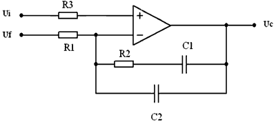 另外,在PI調(diào)節(jié)器中增加一個(gè)位于開(kāi)關(guān)頻率附近的極點(diǎn),用來(lái)消除開(kāi)關(guān)過(guò)程中產(chǎn)生的噪聲對(duì)控制電路的干擾,這樣的PI調(diào)節(jié)器的結(jié)構(gòu)如圖5所示。
