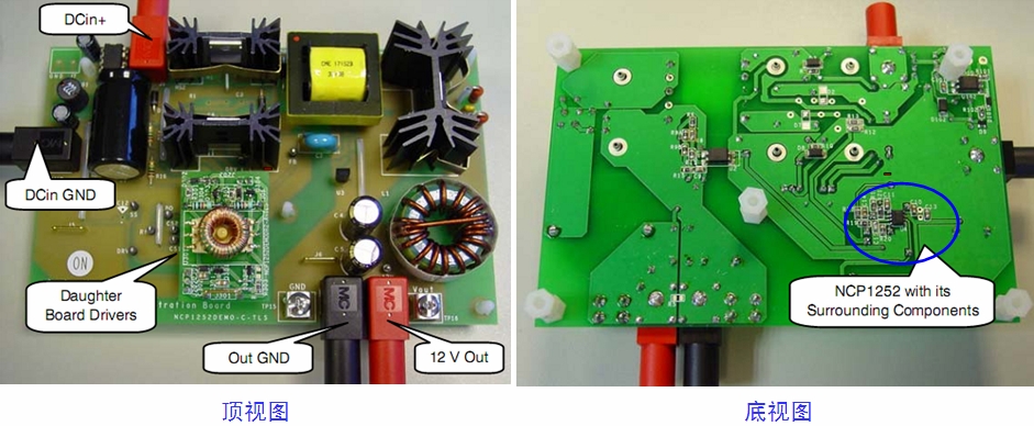 NCP1252演示板的詳細電路圖參見參考資料2,其頂視圖和底視圖則見圖3。