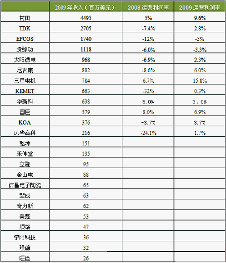- 水清木華公布了09年全球被動元件供應商營業額排名