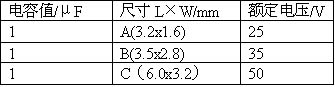 表1三種表貼型鉭電容器的參數