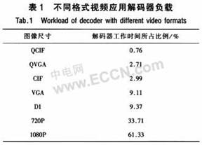 即便采用同一種編碼格式,面向不同的應用場景,多媒體應用的負載情況也有很大區(qū)別,下面以H.264.視頻壓縮標準為例,給出一些常見格式的視頻應用的負載情況,見表1。