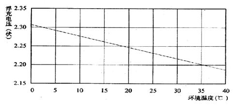 在電源系統中,電池總是在線備用工作的,這樣電池基本處于長期的浮充狀態中,浮充電壓的選取對電池的長期可靠運行起著至關重要的作用。正如前面看到的,偏高的浮充電壓會造成電池緩慢失水并產生熱失控而使電池失效;偏低的浮充電壓會造成電池長期處于充不飽電的狀態,使電池發生硫酸化而導致電池失效。正確的浮充電壓一般應選在2.23V-2.25V/單體,并應隨同電池工作溫度進行相應調整。由于電池生產廠家的不同,這一參數會有一些差異,應嚴格按照廠家提供的參數選取。圖1是某廠家電池浮充電壓同溫度的關系曲線。