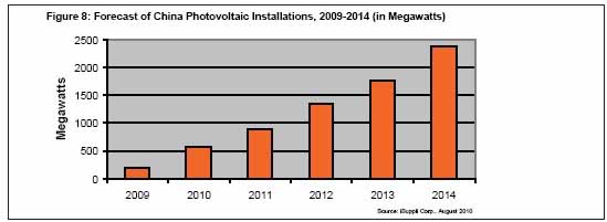 圖8所示為iSuppli公司對2009-2014年中國光伏安裝情況的預(yù)測。