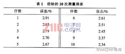 以200W的小型離網(wǎng)光伏系統(tǒng)為例,額定電壓24V,最大電流6.18A,蓄電池200Ah。設(shè)計(jì)正常放電時(shí)間為2~3d,0~6.18A的電流按比例轉(zhuǎn)換為0~5V的電壓,由2只電阻構(gòu)成的衰減器,輸出電壓放大比例由電阻R1和R2的比值決定,設(shè)定U/U轉(zhuǎn)換比例為5/24,則R7=10kΩ,R6+Rp2=48kΩ。根據(jù)電量計(jì)算公式Q=UIT,實(shí)驗(yàn)時(shí)間為中午12時(shí)至下午2時(shí),從顯示電量開始,每隔3min記錄一次實(shí)際功率和監(jiān)控系統(tǒng)所顯示的數(shù)據(jù),各次誤差均小于3%,表l給出初始的10次測量誤差情況,隨電量逐漸增大,誤差變化范圍逐漸縮小。