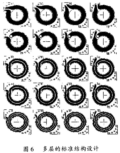 在雙面PCB板的每一層都是由一到多匝的繞組組成的,而且所有的層都保持著一樣的物理特性:即相同的形狀和相同的外部連接點。在有些多匝的層次中,這個外部連接點是不同匝數間的電氣連接點。如果有些層只有一匝,它也可以被印制在PCB的雙面來降低交流阻抗。使用銅箔直接印制在PCB板上來替代傳統的導線,即使在許多需要很多匝數的開關電源中,變壓器依舊能保持一個很小的體積,這便大大減小了整機的體積。具體的設計步奏和注意事項請參閱文獻[3]。圖6顯示了一個頂層的標準匝數設計的例子,它使用的是罐形(RM)磁芯。