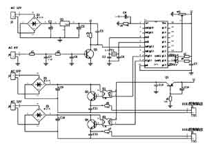 stc12c4052ad單片機自帶A/D轉換器,具有高速、高可靠性,強抗靜電(過4kV快速脈沖干擾),強抗干擾,寬電壓,不怕電源抖動等特點。它完成同步信號檢測(P3.2口,int0中斷輸入端)、控制信號輸出(P3.4、P3.5)、輸出強度調整(P1.1)和工作狀態指示等功能;整流橋Z1、三端穩壓塊u2等構成穩壓電源,為整個控制電路提供電源;r1、r2、Q2等完成交流同步信號的輸入,其中,r1、C7、r2、C8濾除高頻脈沖的干擾,同步信號輸入到單片機的int0端;整流橋z2、z3、Q3、Q4等構成獨立的電源,分別驅動可控硅SCR1、SCR2;光耦G1、G2將低壓控制電路與高壓驅動電路隔離,既保證了控制芯片和人身安全,同時具有抗干擾作用;三極管Q1及周圍電路,用于上電延時。上電時,C14不能突變,所以Q1處于截止狀態,Q3、Q4都不能導通,在單片機初始化完成后,P3.4、P3.5處于正常狀態時,Q1進入導通狀態,避免了SCR1和SCR2同時導通。