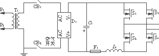 從圖3可以看出,為了防止主電路整流側過流損壞,在變壓器副邊設置了空氣開關。在此需要說明的是,此開關不能設置在變壓器原邊,以避免因勵磁涌流而誤動作。在逆變部分還加入了小電感,以防止電流變化造成的損壞,串入快速熔斷器作為晶體管過電流保護的后備保護。