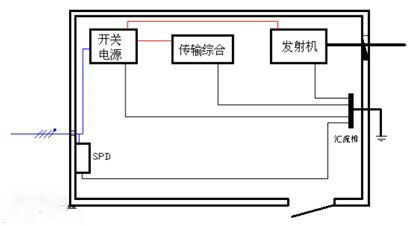 根據(jù)‘郵標(biāo)’規(guī)定“采用星形等電位連接時,基站的總接地匯流排,應(yīng)設(shè)在配電箱和第一級電源SPD附近,開關(guān)電源以及其他設(shè)備的接地排母線均由總接地匯流排引接。如設(shè)備機(jī)架與總匯流排相距較遠(yuǎn)時,可以采用兩級匯流排”。