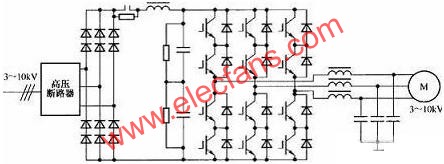 這種方式雖然使用功率器件少、易于控制電流,但是沒有真正解決高壓功率器件的串聯問題。因為即使功率器件出現故障,由于大電感的限流作用,di/dt受到限制,功率器件雖不易損壞,但帶來的問題是對電網污染嚴重、功率因數低。并且電流源型高壓變頻器對電網電壓及電機負載的變化敏感,無法做成真正的通用型產品。