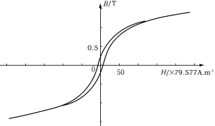 圖4是有效磁導(dǎo)率為75的鐵粉心的靜態(tài)磁滯回線,和鐵氧體材料相比,有高的Bs值,不易飽和,因此體積至少可減小一半,采用廉價(jià)的鐵粉作原料,并且不需要開口,沒有噪聲,成本可大大降低,價(jià)格可以和鐵氧體比擬,以27×14×11的規(guī)格為例,它可以承受400安匝而不飽和,優(yōu)點(diǎn)突出。
