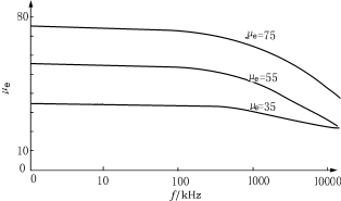 圖5有效磁導(dǎo)率與頻率的關(guān)系曲線