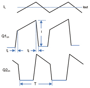 此概念可以推廣到所有利用梯形波形進行電路設計的場合,不過本文僅討論電源設計。參考圖4中的交流模型,研究其回路電流流動情況:起點為輸入電容器,然后在Q1導通期間流向Q1,再通過L1進入輸出電容器,最后返回輸入電容器中。