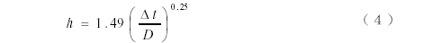 代入數(shù)據(jù)得Gr=1.1673╳10-7,而普朗特數(shù)Pr=0.7085,故Pr× Gr=8.2703╳105,在1╳104~1╳109 之間,判斷流態(tài)為層流。相應的對流換熱系數(shù)計算公式為