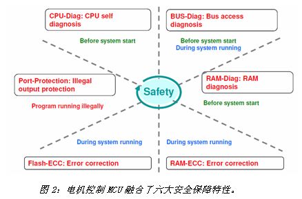 作為新能源汽車的核心部件。電機控制不僅關系著整車性能還與行車安全息息相關。在富士通的電機控制MCU設計中充分考慮了安全特性,通過6大安全機制來保證系統運行的安全可靠,包括:在系統啟動前進行MCU的自我診斷、總線自診斷、RAM的自診斷;程序非法運行時非法輸出端口保護;系統運行期間進行總線診斷、RAM錯誤糾正、閃存錯誤糾正。據透露,富士通在未來的產品計劃中,還將增加核心MCU的冗余設計(例如雙核或多核)以實現更強的系統保護。