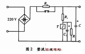 開關電源的輸入一般采用電容整流濾波電路如圖2所示,濾波電容C可選用低頻或高頻電容器,若用低頻電容器則需并聯同容量高頻電容器來承擔充放電電流。圖中在整流和濾波之間串入的限流電阻Rsc是為了防止浪涌電流的沖擊。合閘時Rsc限制了電容C的充電電流,經過一段時間,C上的電壓達到預置值或電容C1上電壓達到繼電器T動作電壓時,Rsc被短路完成了啟動。同時還可以采用可控硅等電路來短接Rsc。當合閘時,由于可控硅截止,通過Rsc對電容C進行充電,經一段時間后,觸發可控硅導通,從而短接了限流電阻Rsc。