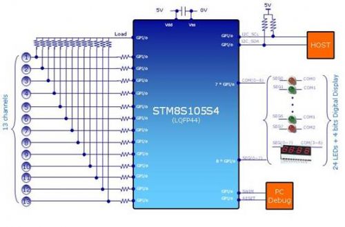 相較于機械式按鍵和電阻式觸摸按鍵,電容式觸摸按鍵不僅耐用,造價低廉,機構(gòu)簡單易于安裝,防水防污,而且還能提供如滾輪、滑動條的功能。但是電容式觸摸按鍵也存在很多的問題,因為沒有機械構(gòu)造,所有的檢測都是電量的微小變化,所以對各種干擾敏感得多。ST針對家電應(yīng)用特別是電磁爐應(yīng)用,推出了一個基于STM8系列8位通用微控制器平臺的電容式觸摸感應(yīng)方案,無需增加專用觸摸芯片,僅用簡單的外圍電路即可實現(xiàn)電容式觸摸感應(yīng)功能,方便客戶二次開發(fā)。