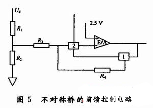 Buck控制采用了最大占空比為100%的UC3842芯片,不對(duì)稱橋控制采用了最大占空比為50%的UC3844芯片。同時(shí)兩級(jí)電路都采用電壓型的控制。不對(duì)稱橋采用的是前饋控制,當(dāng)輸入的電壓有波動(dòng)時(shí),占空比能夠相應(yīng)調(diào)整,以保證前級(jí)的輸出基本不變,如圖5所示。