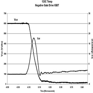 在相同的測試條件下,當柵電壓是在0V或單正向柵驅動情況下,IRGP30B120KD的電路性能顯示dV/dt感生開通電流減小比例為21:1。如果IGBT采用這種方式驅動,電流很小,對功耗的影響幾乎可以忽略。
