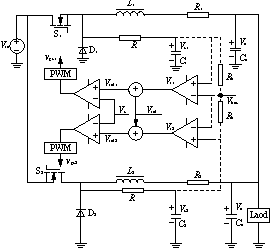 在大功率DC/DC開關電源中,為了獲得更大的功率,特別是為了得到大電流時,經常采用N個單元并聯的方法。多個單元并聯具有高可靠性,并能實現電路模塊標準化等優點。然而在并聯中遇到的主要問題就是電流不均,特別在加重負載時,會引起較為嚴重的后果。普通的均流方法是采取獨立的PWM控制器的各個模塊,通過電流采樣反饋到PWM控制器的引腳FB或者引腳COMP,即反饋運放的輸入或者輸出腳來凋節輸出電壓,從而達到均流的目的。顯然,電流采樣是一個關鍵問題:用電阻采樣,損耗比較大,電流放大后畸變比較大;用電流傳感器成本高;用電流互感器采樣不是很方便,同時會使電流失真。本文提出了一種新型的、方便的、無損的電流采樣方法,并在這種電流檢測方法的基礎上實現了并聯系統的均流。
