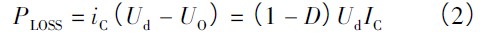 在保證晶體管VT 的集射電壓大于其飽和壓降( VCE≥VCES) 的條件下,調整占空比D ( 如D 取值范圍為85% ~ 95%) ,可使集射電壓足夠小。同時,控制集電極瞬時電流iC的最小值近似為零,則IC最小。因此,晶體管VT 的損耗為最小,可提高驅動電源的效率。