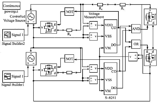 圖5 2節鋰電池串聯均充保護仿真模型